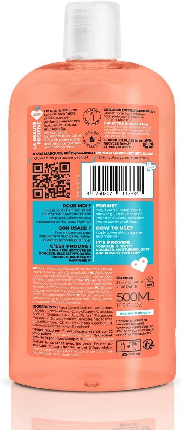 Gel douche ph neutre .Monoï & Macadamia BIO . Fabrication française . Vegan . 500ml.