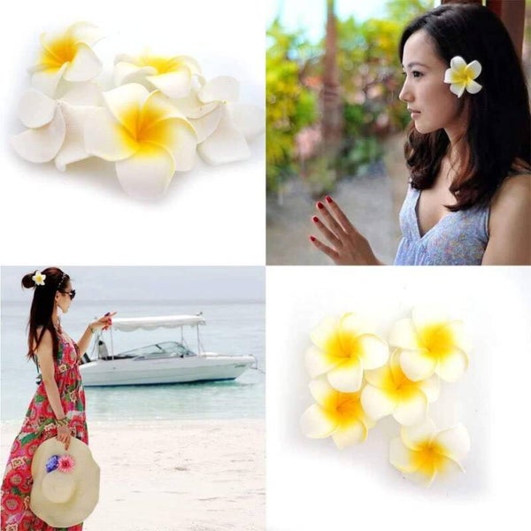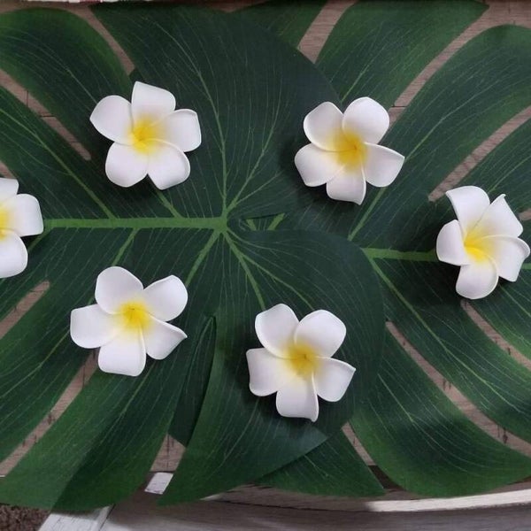 Lot de 100 fleurs de frangipaniers en mousse de 5cm x 5cm.